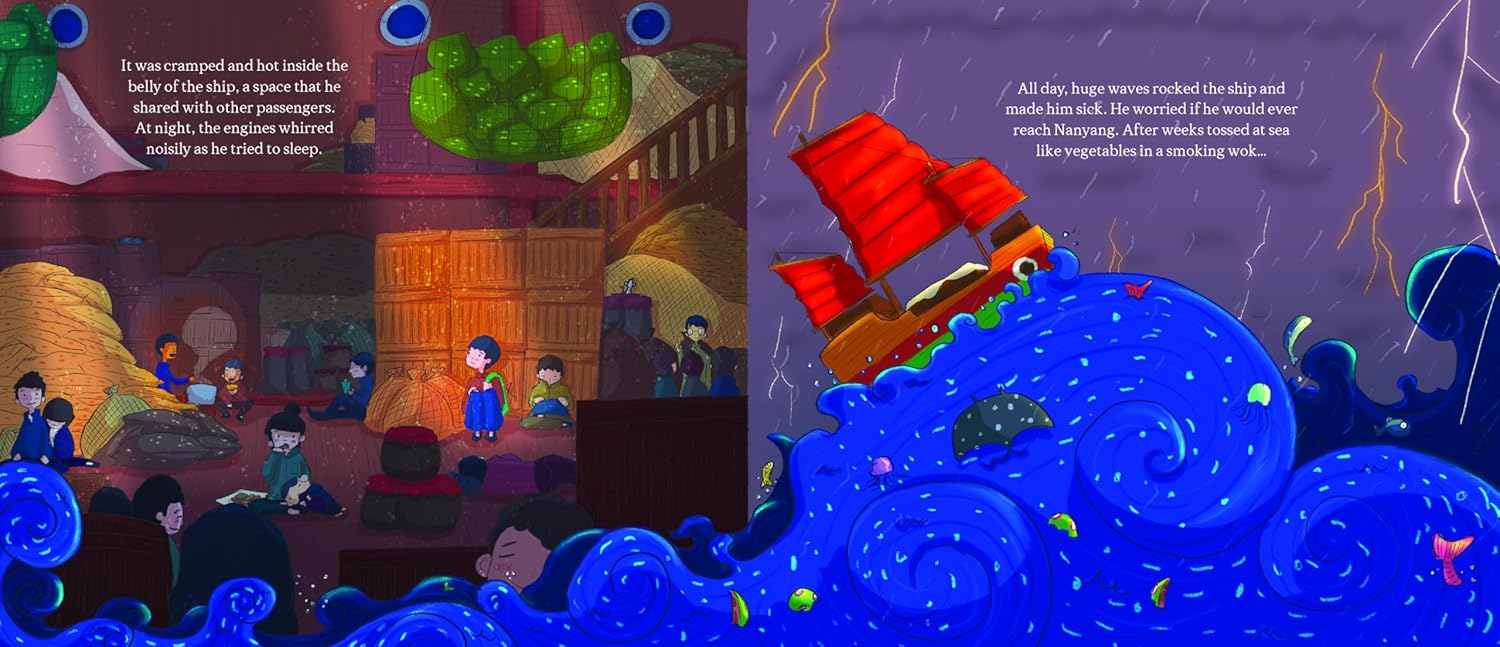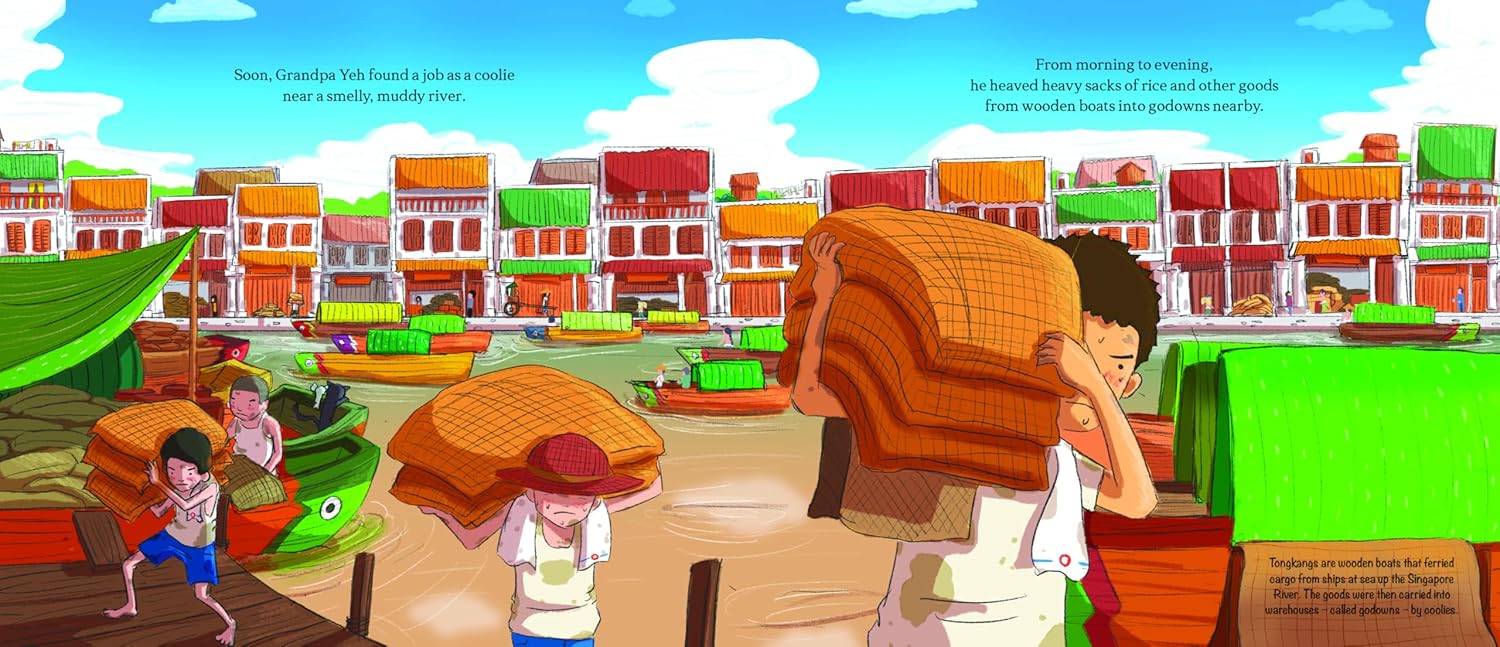 Grandpa Yeh was only seventeen when he left his home in Swatow, China to find work in another country. He had nothing but the clothes on his back and his grandmother’s precious rice cake mould. But life as a coolie was hard and he was terribly homesick. Then one day, he decided to make his Ah Ma’s png kueh, the Teochew rice cake that reminded him so much of home – and everything changed.