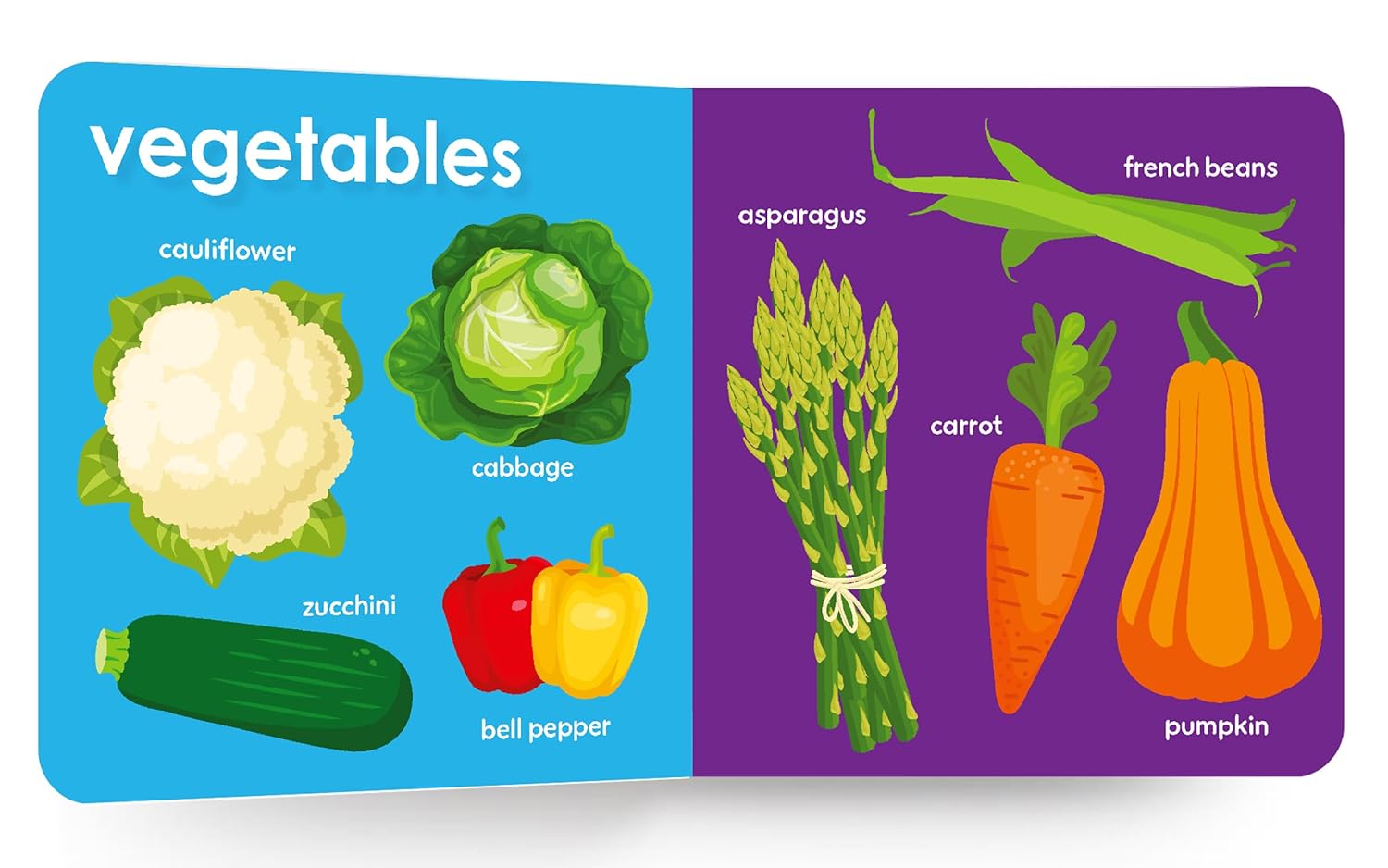 A wonderfully designed book that will help little scholars identify and learn about different fruits and vegetables. An amazing picture book loaded with colorful illustrations that make each word easy to remember.