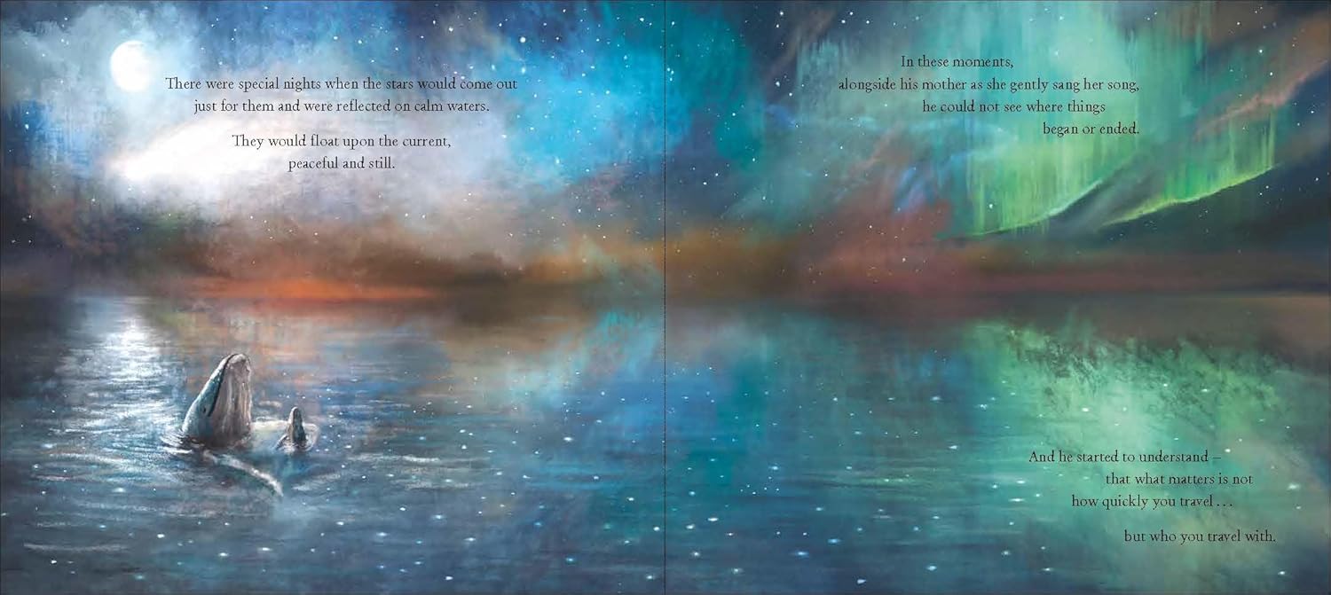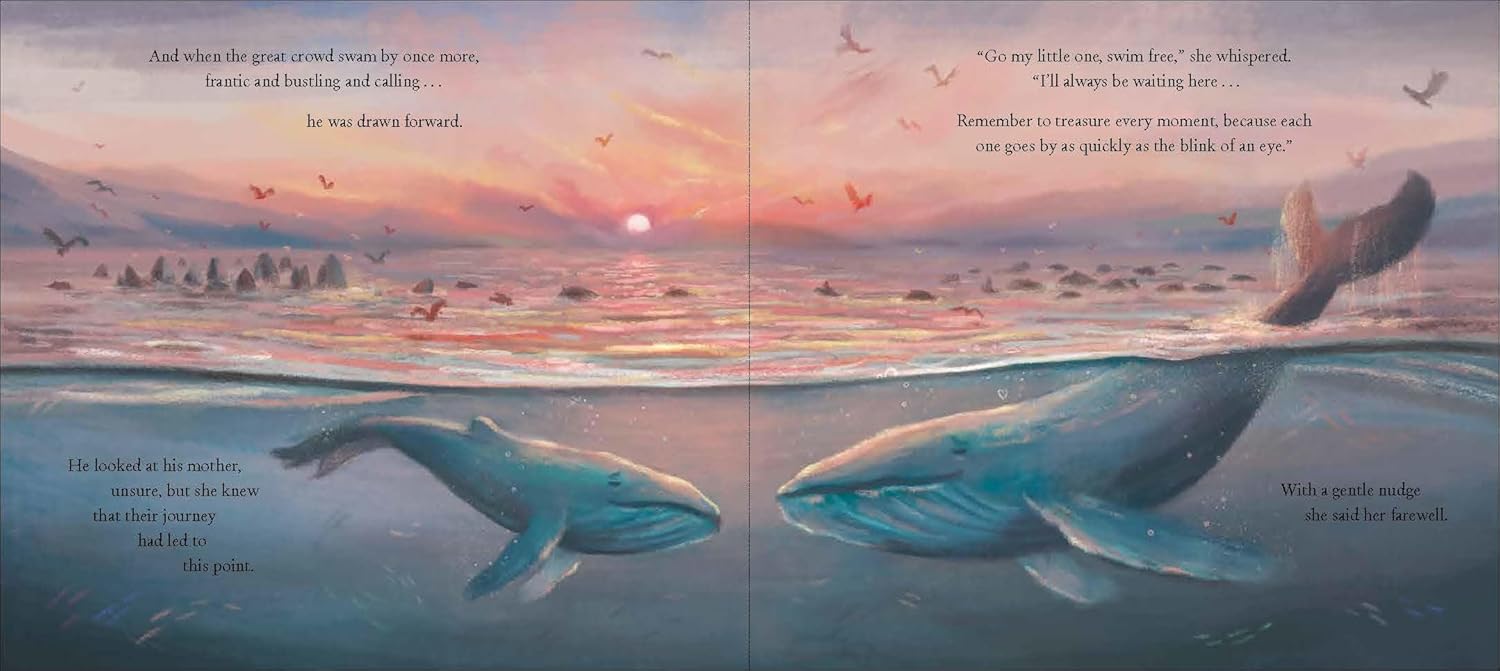 One day, the time will come for the grown calf to set out on his own . . . but wherever he goes and whatever he does, his mother will be waiting for him and sending her song of love across the oceans.